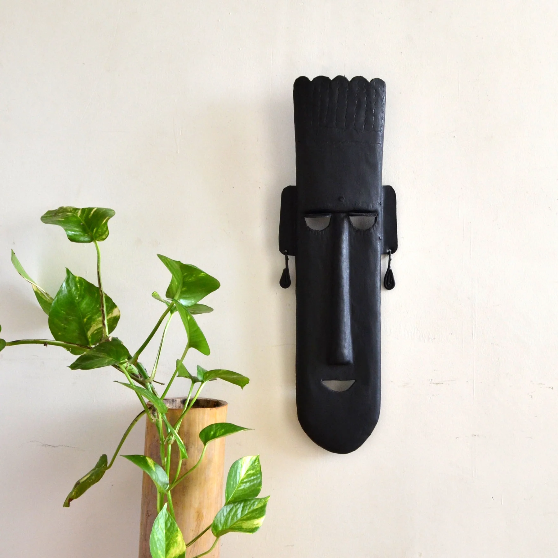 Wrought Iron Black Metal Tribal Mask Wall Decor